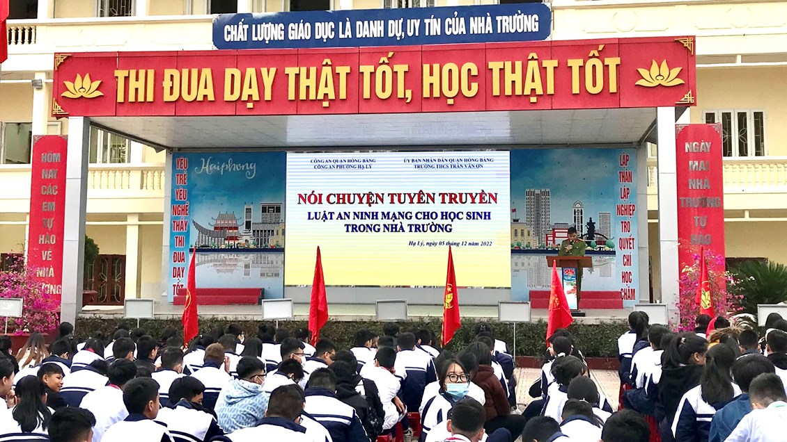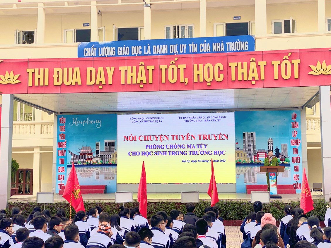 Cũng trong khuôn khổ của chương trình, Liên đội phối hợp với Công an phường Hạ Lý tổ chức nói chuyện tuyên truyền về tác hại của Ma túy và Luật an ninh mạng. Qua đó, các em học sinh có thêm những kiến thức, hiểu biết cơ bản trong công tác phòng, chống Ma túy học đường, nâng cao nhận thức cho học sinh về tính chất, mức độ nguy hiểm của loại tội phạm mạng. Từ đó, các em được hướng dẫn kỹ năng và những giải pháp hữu ích để giúp bản thân tránh xa tệ nạn Ma túy trong trường học, điều chỉnh hành vi, thực hiện nghiêm các quy định của Pháp luật nhằm đảm bảo an toàn cho chính bản thân, gia đình và cộng đồng./.