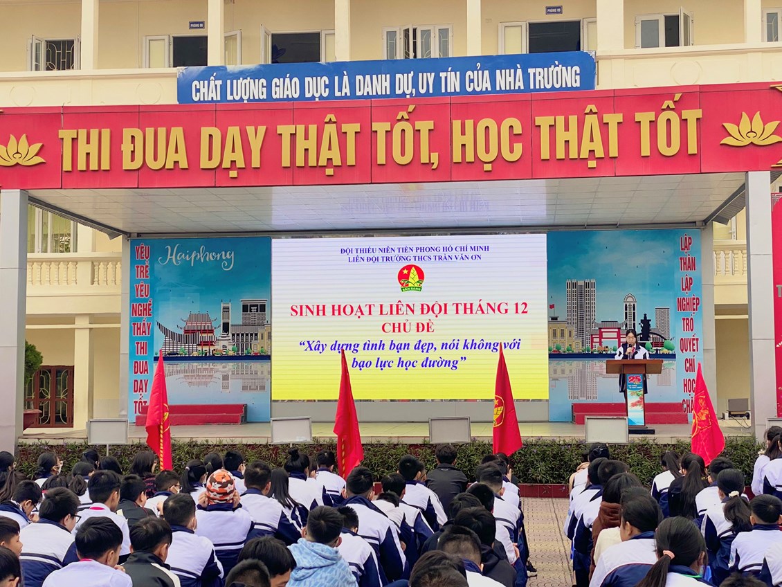 Sáng ngày 5/12/2022, Liên đội trường THCS Trần Văn Ơn tổ chức Lễ chào cờ tháng 12 với chủ điểm "Uống nước nhớ nguồn" nhằm đánh giá hoạt động công tác Đội và phong trào thiếu nhi tháng 11, triển khai nhiệm vụ hoạt động tháng 12. Trong chương trình, Liên đội tổ chức sinh hoạt chủ đề " Xây dựng tình bạn đẹp, nói không với bạo lực học đường".