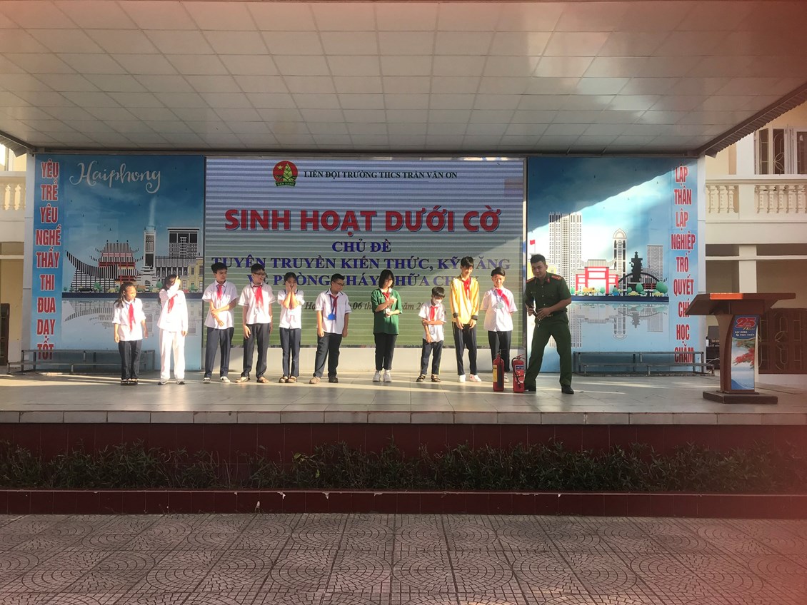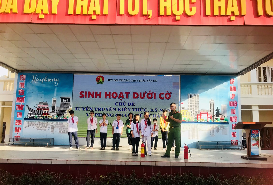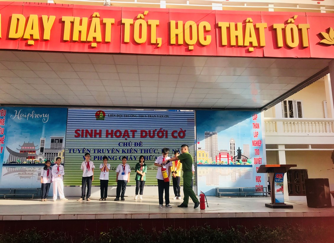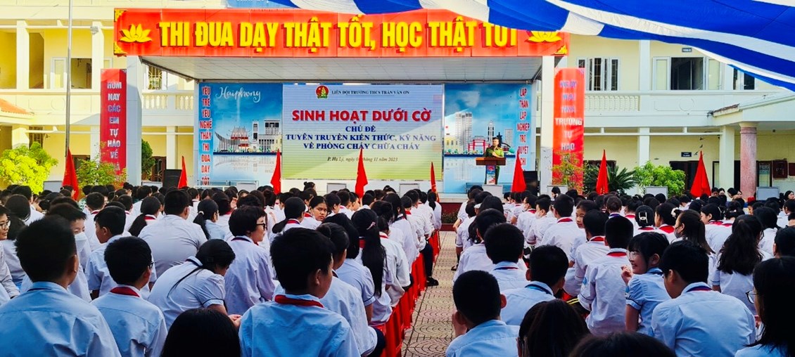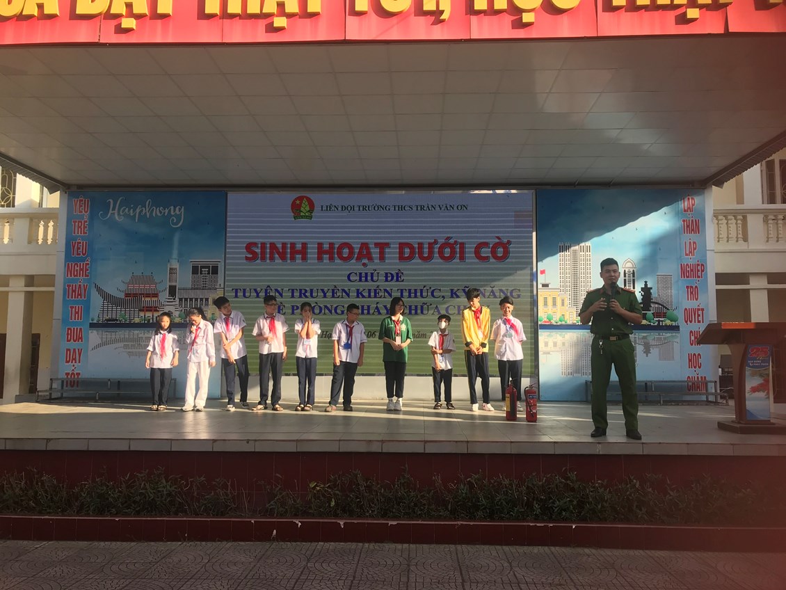 Nhằm tăng cường công tác tuyên truyền, phổ biến kiến thức, kỹ năng về phòng cháy, chữa cháy, cứu nạn, cứu hộ. Ngày 06/11/2023, trường THCS Trần Văn Ơn phối hợp với Đội cảnh sát PCCC, cứu hộ cứu nạn quận Hồng Bàng tổ chức tuyên truyền về công tác phòng cháy, chữa cháy, cứu nạn, cứu hộ cho CBGVNV và học sinh nhà trường.