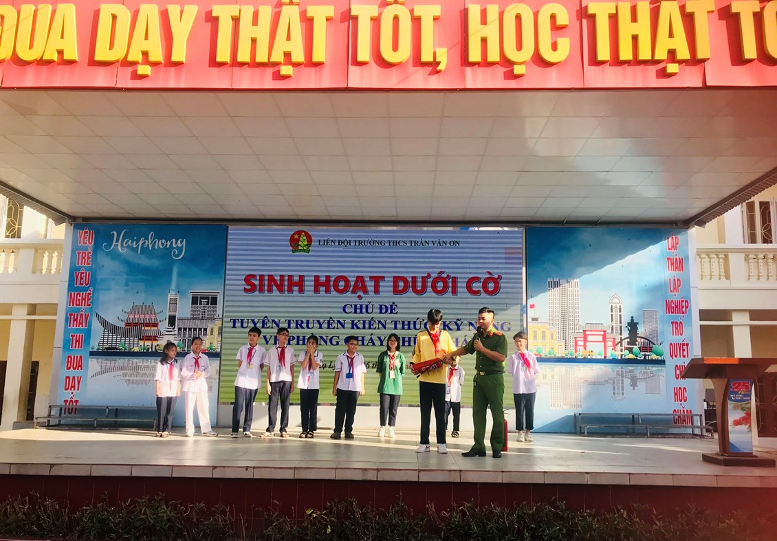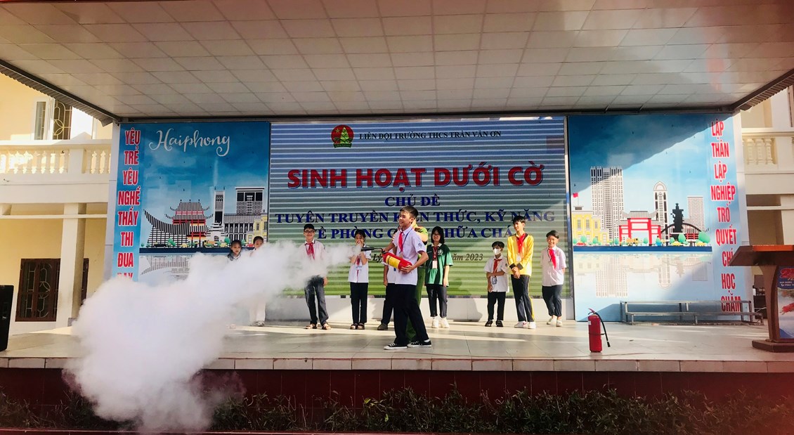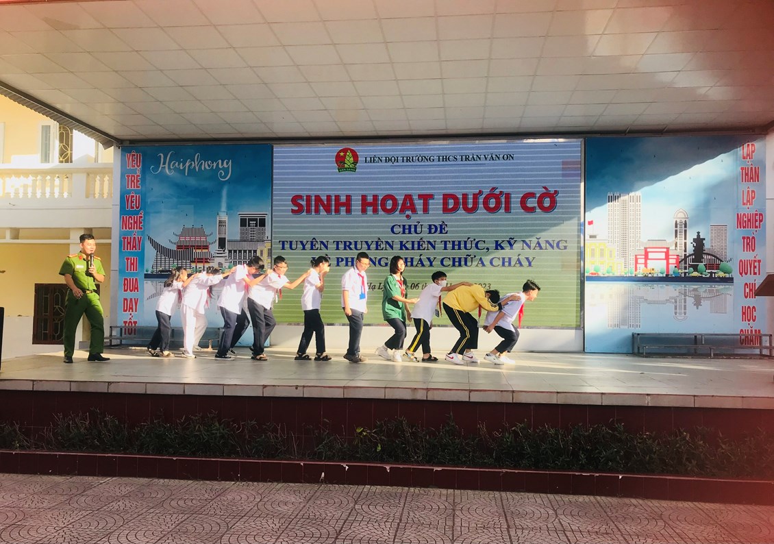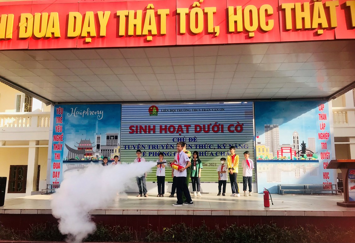 Nhằm tăng cường công tác tuyên truyền, phổ biến kiến thức, kỹ năng về phòng cháy, chữa cháy, cứu nạn, cứu hộ. Ngày 06/11/2023, trường THCS Trần Văn Ơn phối hợp với Đội cảnh sát PCCC, cứu hộ cứu nạn quận Hồng Bàng tổ chức tuyên truyền về công tác phòng cháy, chữa cháy, cứu nạn, cứu hộ cho CBGVNV và học sinh nhà trường.