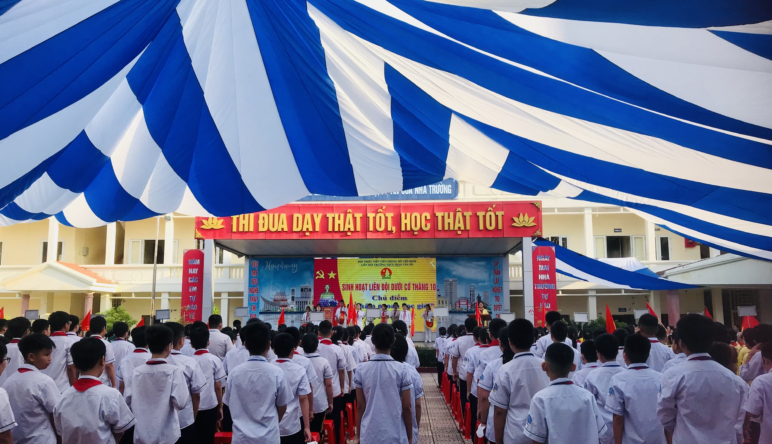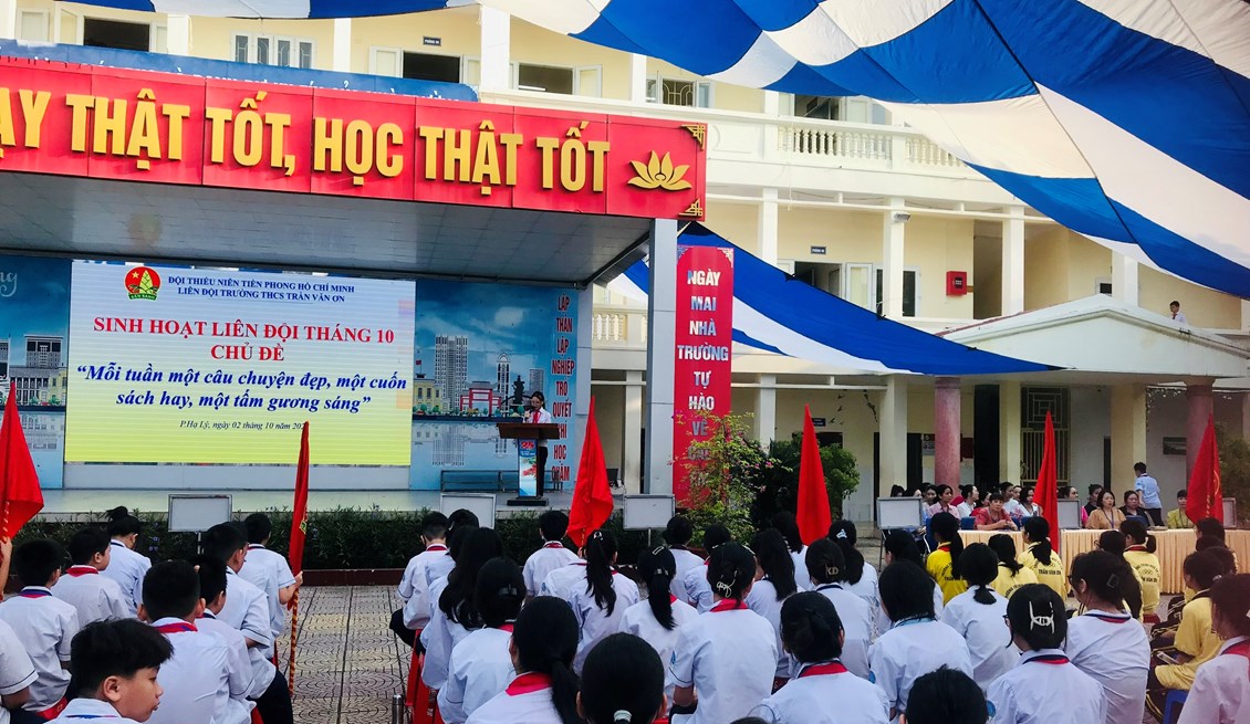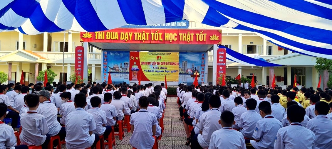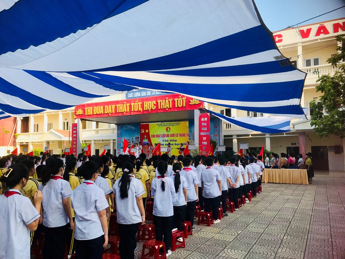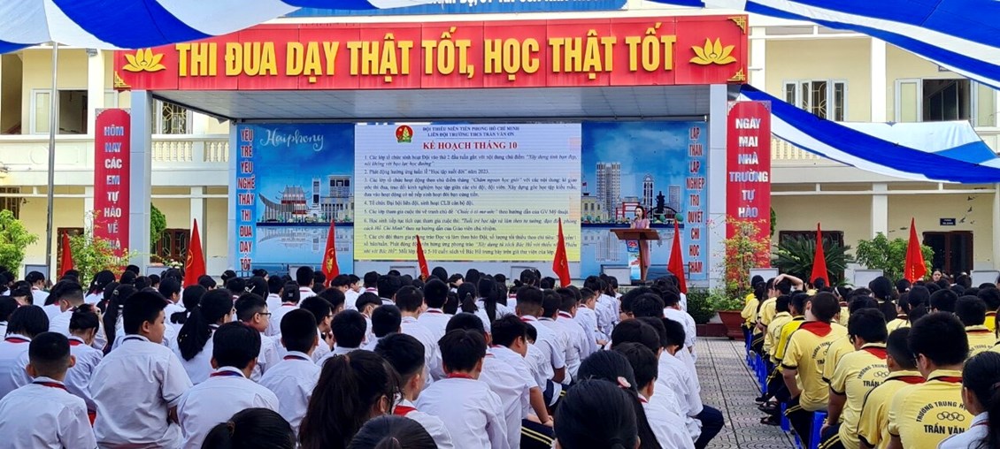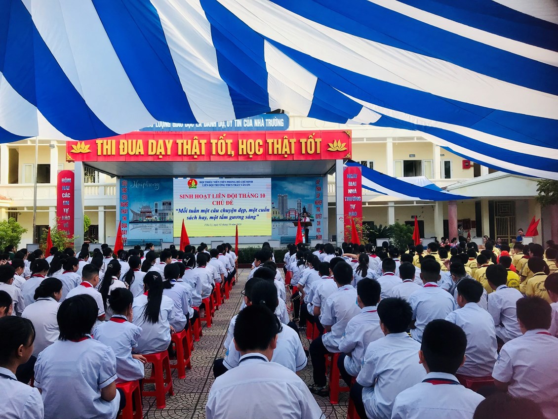Thực hiện Chương trình công tác Đội và phong trào thiếu nhi năm học 2023- 2024. Được sự đồng ý của Ban giám hiệu nhà trường, sáng ngày 02/10/2023, Ban phụ trách Liên đội trường THCS Trần Văn Ơn đã tổ chức buổi Sinh hoạt dưới cờ cấp Liên đội tháng 10/2023.
