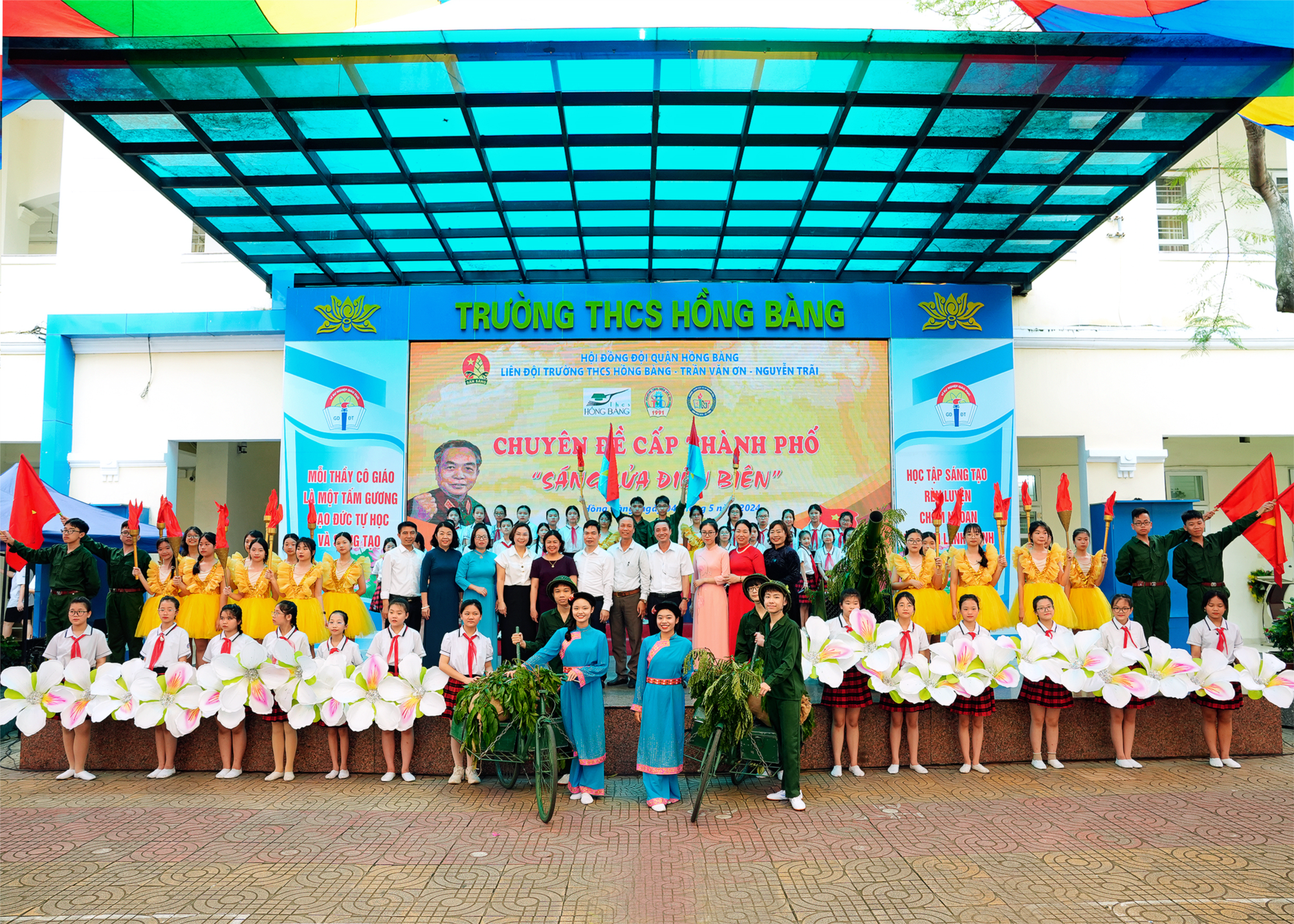 Với nội dung ca ngợi truyền thống vẻ vang của lịch sử dân tộc Việt Nam; Hướng tới kỷ niệm 70 năm chiến thắng lịch sử Điện Biên Phủ (7/5/1954 - 7/5/2024). Sáng ngày 04/5/2024 cụm ba Liên đội trường THCS Hồng Bàng - THCS Trần Văn Ơn - THCS Nguyễn Trãi tổ chức chuyên đề Đội cấp Thành phố năm học 2023 - 2024 mang tên “Sáng lửa Điện Biên”.
