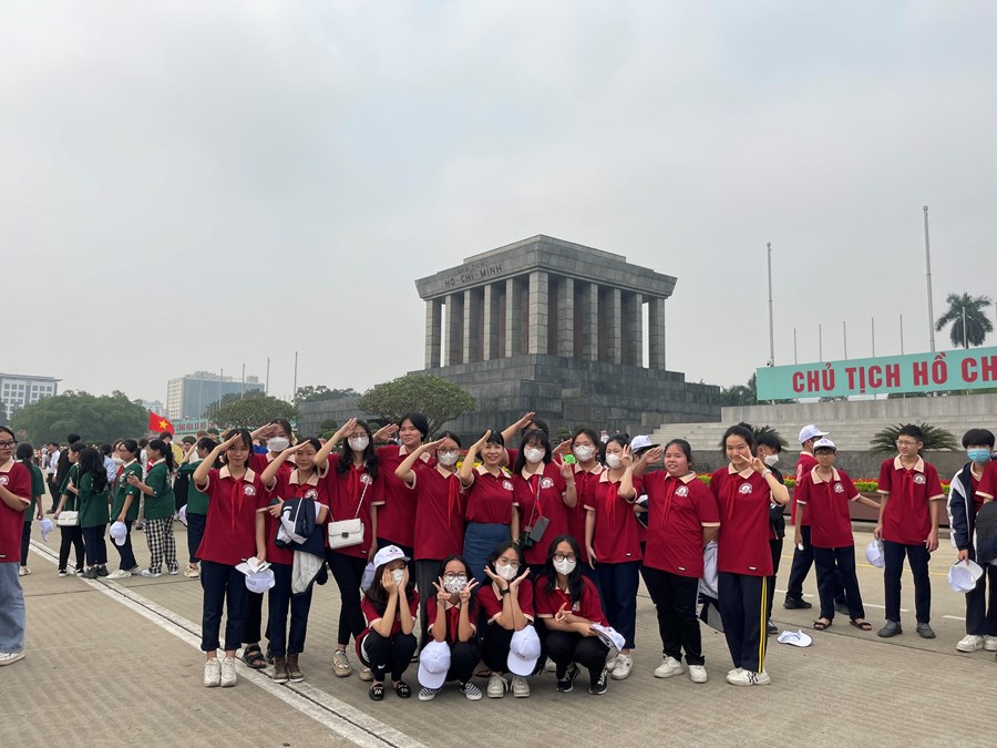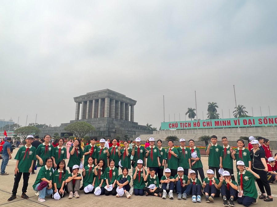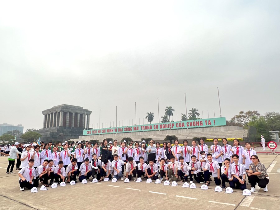 Buổi sáng, đoàn đến thăm lăng Chủ tịch Hồ Chí Minh, các em học sinh được vào ngắm nhìn thi hài Bác, tham quan nhà sàn, ao cá Bác Hồ...