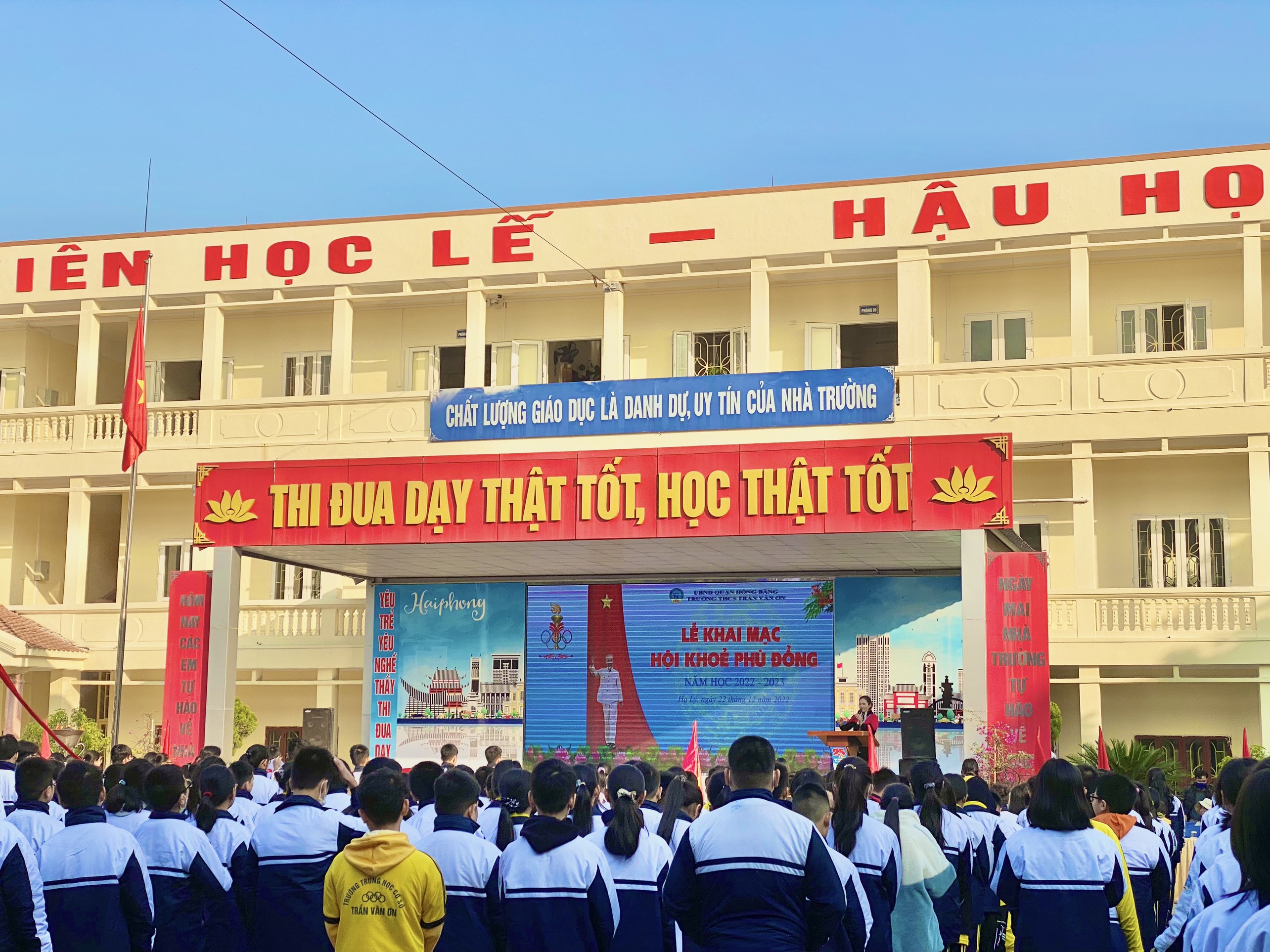 🌸💐💐Thực hiện Kế hoạch số 88/KH-GDĐT của Phòng GD&ĐT quận Hồng Bàng về việc tổ chức Hội khỏe Phù Đổng năm học 2022-2023. Với mục đích nhằm khơi dậy tinh thần khỏe để học tập và rèn luyện, giúp học sinh được tham gia nhiều hoạt động bổ ích để tăng cường sức khỏe cũng như kịp thời phát hiện và bồi dưỡng các em có năng khiếu thể dục thể thao. Sáng ngày 22/12/2022, trường THCS Trần Văn Ơn tổ chức Lễ khai mạc Hội khỏe Phù Đổng năm học 2022 - 2023.