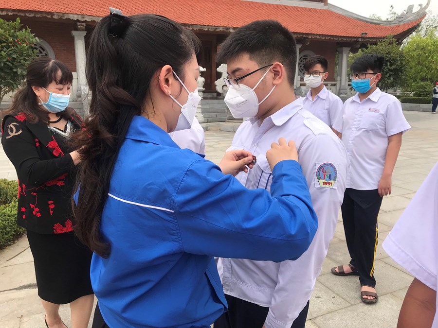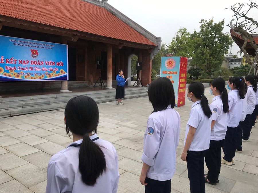 Buổi chiều cùng ngày, Chi đoàn trường THCS Trần Văn Ơn tổ chức Lễ dâng hương và kết nạp đoàn viên mới cho 46 đội viên trưởng thành ưu tú đã qua lớp bồi dưỡng cảm tình đoàn tại đền Cụ Nguyễn Đức Cảnh. Đây là hoạt động thiết thực, ý nghĩa chào mừng kỷ niệm 91 năm ngày thành lập Đoàn TNCS Hồ Chí Minh.