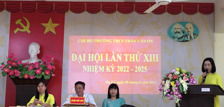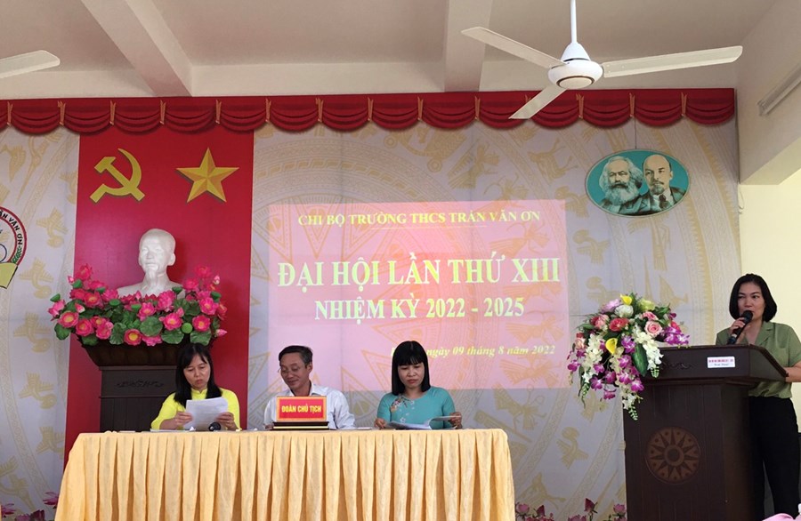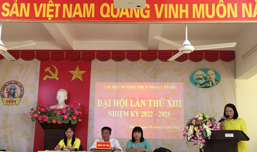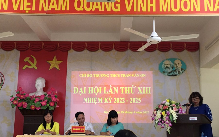 Ngày 09/8/2022 Chi bộ Trường THCS Trần Văn Ơn tổ chức thành công Đại hội Chi bộ nhiệm kỳ 2022 - 2025. Đến dự Đại hội có các đồng chí đại biểu: