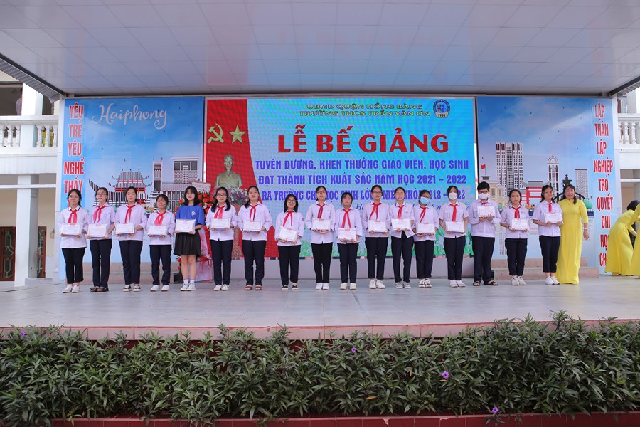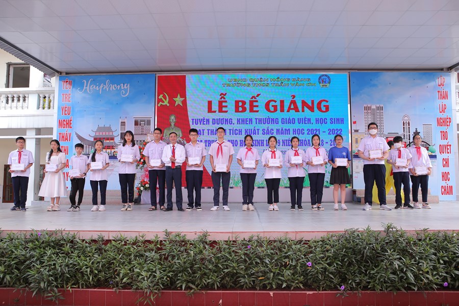Tại chương trình Lễ bế giảng năm học 2021 - 2022, nhà trường đã tuyên dương, khen thưởng cho 09 thầy cô giáo có thành tích xuất sắc trong công tác bồi dưỡng học sinh giỏi các cấp; 17 học sinh đạt giải trong các kỳ thi HSG cấp quận và thành phố; 07 học sinh đạt điểm TBM cao nhất và 61 học sinh xuất sắc toàn trường.