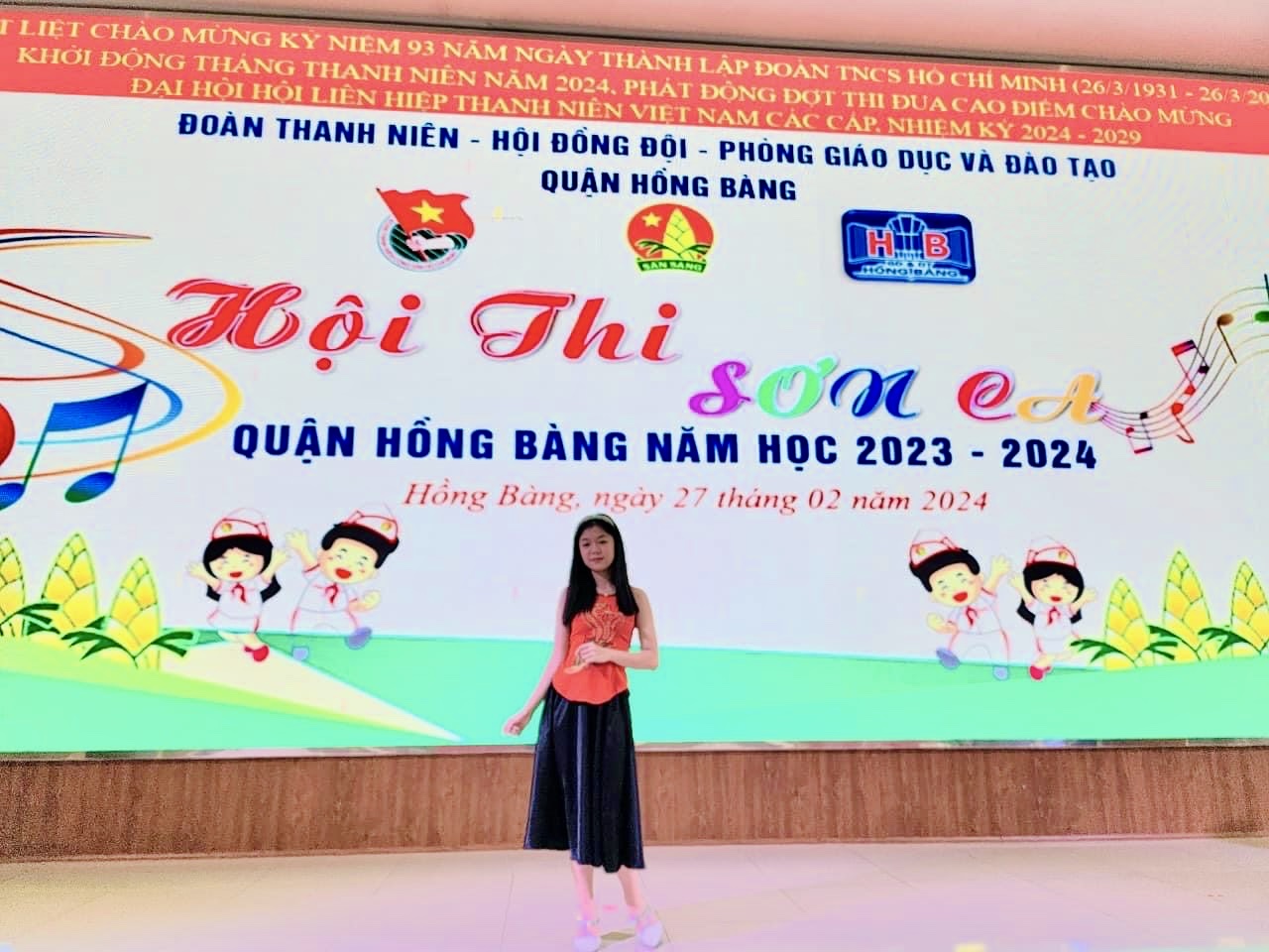 Ngày 27/2/2024 BTV Quận đoàn Hồng Bàng - Phòng Giáo dục và Đào tạo Quận Hồng Bàng tổ chức Hội thi Sơn ca cấp quận năm học 2023 - 2024. Hội thi là một sân chơi bổ ích, là dịp để các em học sinh thể hiện tài năng và niềm say mê ca hát của mình. Trường THCS Trần Văn Ơn có em Nguyễn Hà Vy học sinh lớp 8A2 tham gia Hội thi với sự tự tin thể hiện giọng hát và khả năng diễn xuất em đã xuất sắc đạt giải Nhất và được lựa chọn tham gia Hội thi Sơn ca cấp thành phố năm học 2023 - 2024.
